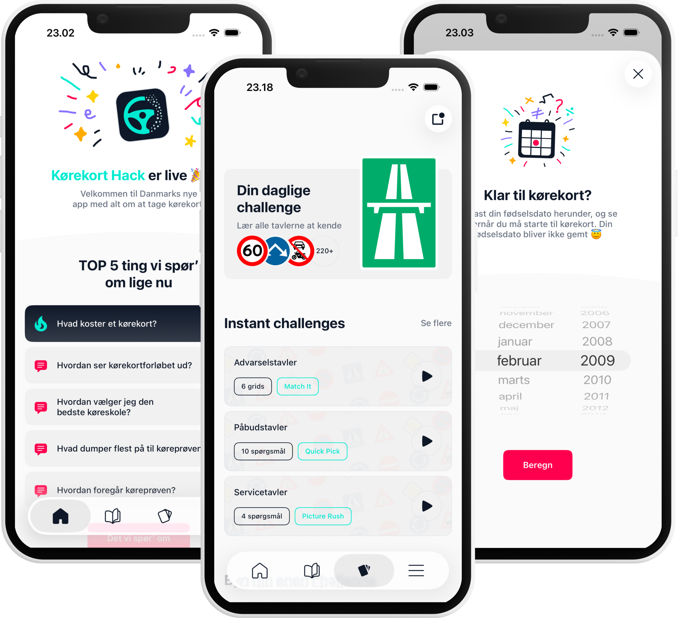 Jeg har været med til at udvikle appen Kørekort Hack. Danmarks nye app med alt om at tage kørekort. Den er helt og aldeles gratis, og den er bygget som en hjælp til dig der skal til at tage kørekort. Læs alt om Kørekort Hack appen her.